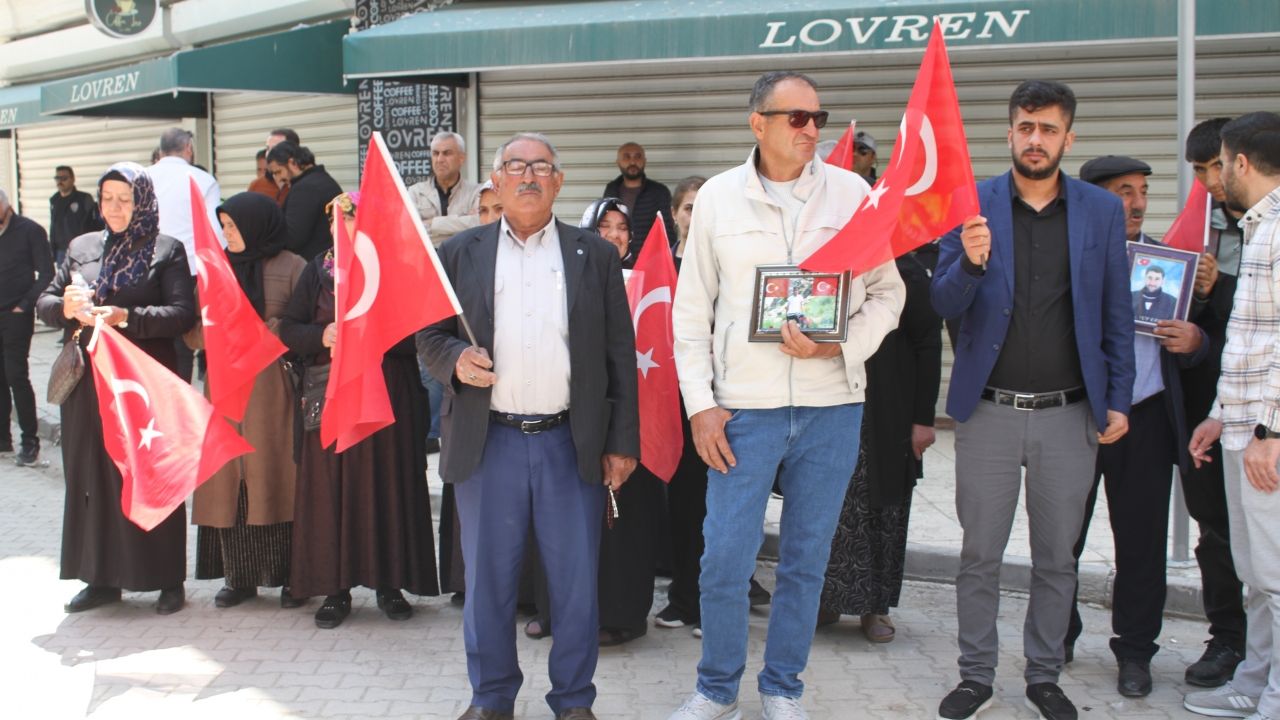 Menekşe Sokak'ta bir araya gelen aileler, Türk bayrakları ve evlatlarının fotoğraflarını taşıyarak DEM Parti İl Başkanlığının önüne yürüdü.