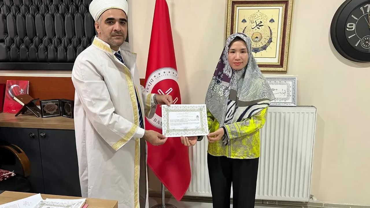 Burada düzenlenen ihtida merasiminde İlçe Müftüsü Mahmut Sevük, Chau'ya İslam'ın inanç, ibadet ve ahlak esasları hakkında bilgi verdi.