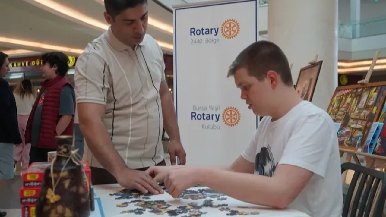 Bursa'da 23 Nisan Ulusal Egemenlik ve Çocuk Bayramı etkinlikleri kapsamında ve "Otizm Farkındalık Ayı" çerçevesinde düzenlenen sergi büyük ilgi gördü.Herkes Duysun / BURSA (İGFA) - Bursa Yeşil Rotary Kulübü öncülüğünde, BTSO Baha Cemal Zağra Özel Eğitim Uygulama Okulu’nun özel öğrencisi tarafından hazırlanan "Odaklanma ve Dikkatin Dünyası” adlı sergi, KoruPark AVM'de sanatseverlerle buluştu.