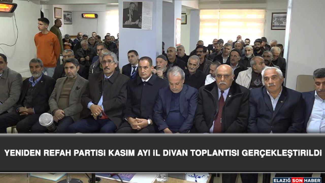 Yeniden Refah Partisi Elazığ İl Başkanlığı tarafından Kasım Ayı İl Divan Toplantısı düzenlendi. Toplantıya, Yeniden Refah Partisi MKYK üyesi ve Genel Merkez Eğitim Başkan Yardımcısı Mehmet Gül, Yeniden Refah Partisi MKYK Üyesi Mehmet Tan, Yeniden Refah Partisi İl Sorumlusu Muzaffer Özdemir, İl Başkanı Av. Erhun Karakuş ve İl, İlçe Parti Teşkilat Üyeleri katıldı.