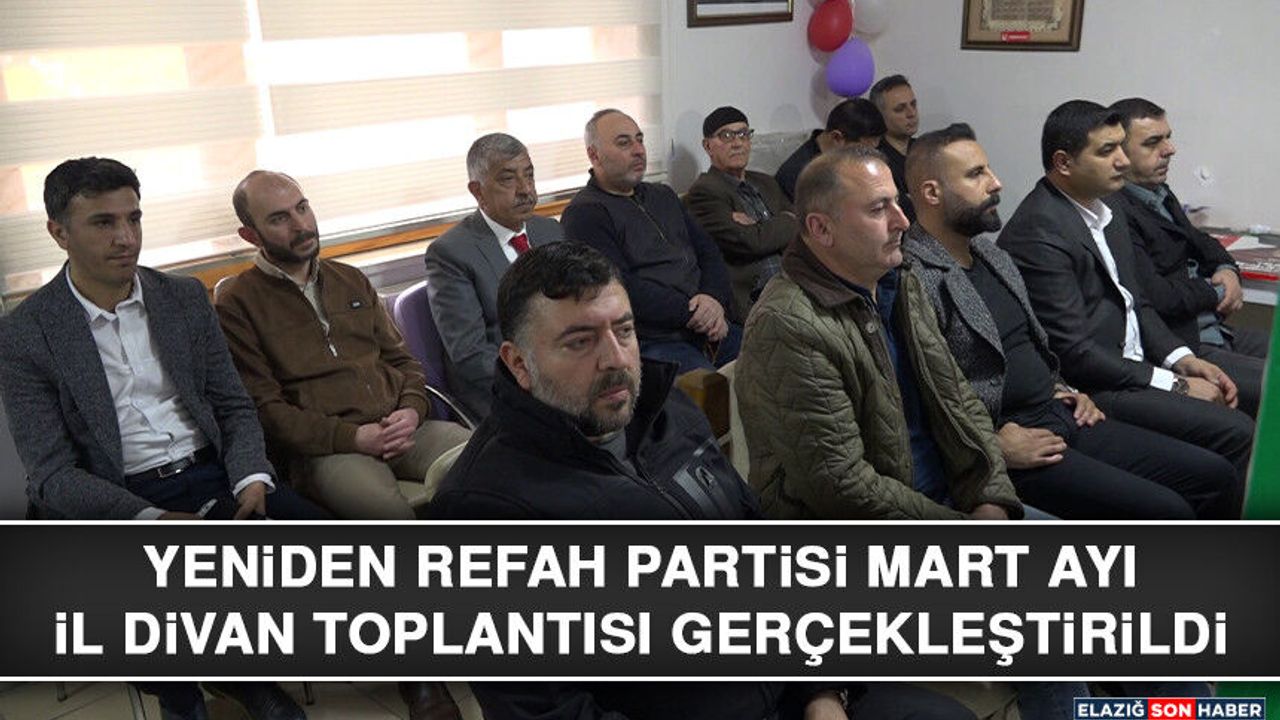 Yeniden Refah Partisi Mart ayı il divan toplantısı gerçekleştirildi. Yeniden Refah Partisi İl Başkanlığında “İş Başa Düştü” temasıyla gerçekleştirilen toplantıya, Kahramanmaraş Dulkadiroğlu Belediye Başkanı Mehmet Akpınar, Yeniden Refah Partisi İl Başkanı Avukat Erhun Karakuş, Alacakaya Belediye Başkanı Zafer Altınışık, Akçakiraz Belediye Başkanı İbrahim Ormanoğlu, Yeniden Refah Partisi il ve ilçe teşkilat mensupları katıldı.