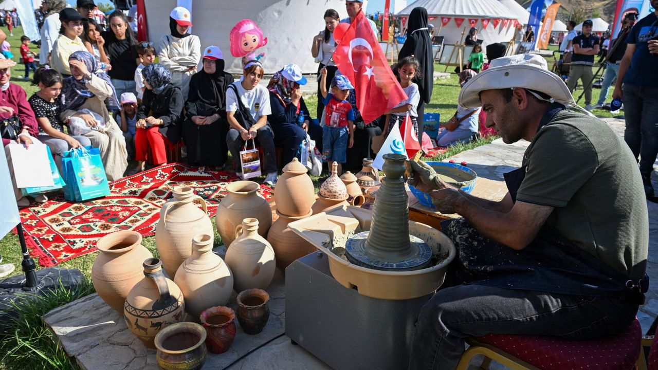 Kültür ve Turizm Bakanlığınca desteklenen Vanlı Osman Eşme'nin Anadolu'nun en eski el sanatlarından çanak, çömlek ve testi yaptığı çadırı ziyaret edenler, unutulmaya yüz tutmuş sanatı deneyimledi.