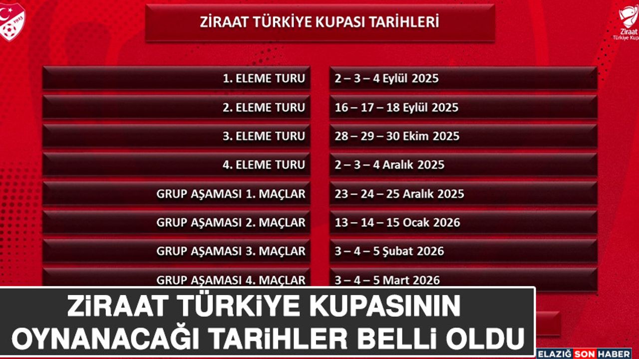 Türkiye futbol federasyonu, yeni formatıyla oynanacak olan Ziraat Türkiye kupası müsabakalarının oynanacağı tarihleri açıkladı.