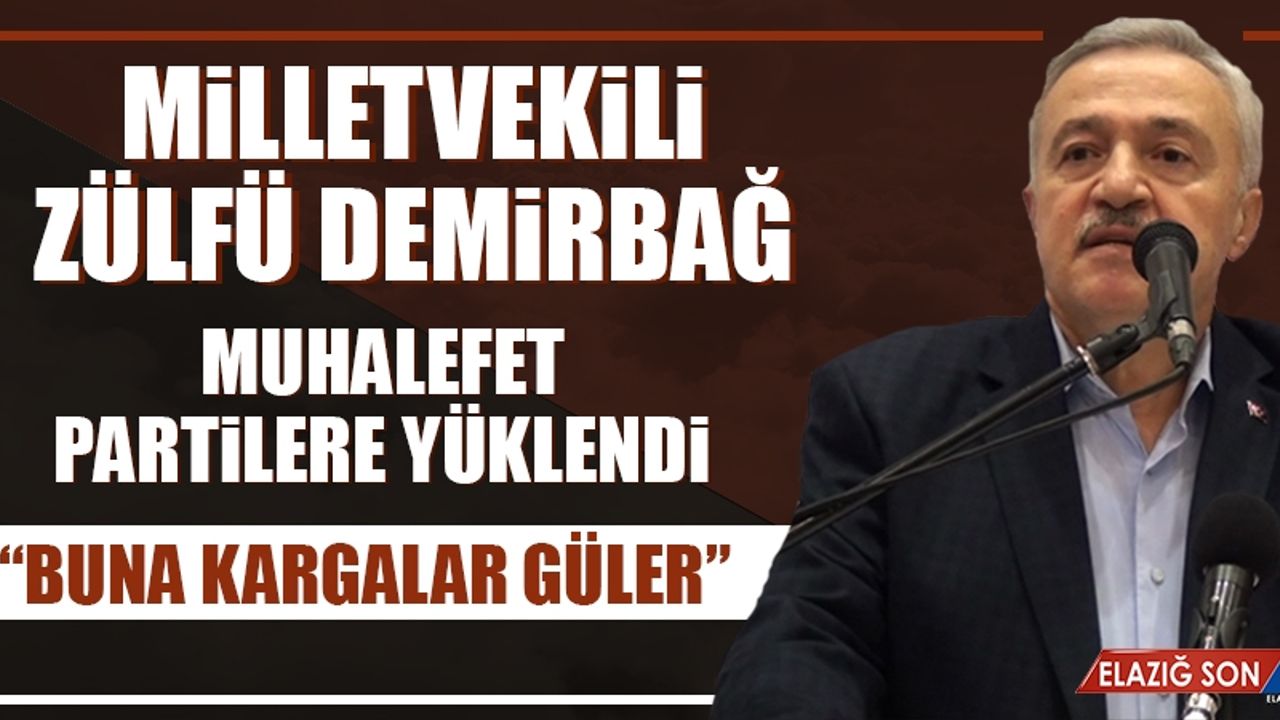 Milletvekili Zülfü Demirbağ “Şimdi kalkmışlar mangalda kül bırakmıyorlar. Bir de işin acı tarafı arkadaşlar diyor ‘bu memlekete hizmet gelmesini istiyorsanız AK Parti’ye oy vermeyin’ Allah Allah…Böyle bir izah tarzı olabilir mi? Anladık elinizde bir argüman yok. Milletin siyasi düşüncesini değiştirecek bir malzeme yok anladık da bu nereden çıktı? ‘Memlekete, Elazığ’a hizmet gelmesini istiyorsanız oy vermeyin’. Buna kargalar güler ya” diye konuştu.